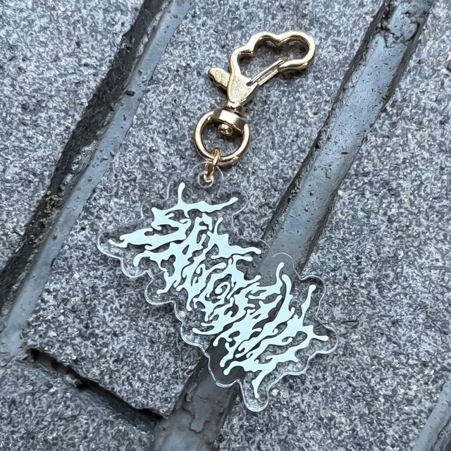 SAGOSAID “itsumademo shinu noha kowai ?” Release show のグッズ、クリアカラーのアクリルキーチェーン。 ▪️カラー 本体:クリア/白プリント チェーン:ゴールド design by みなみはん IG: @gar_ba_ge